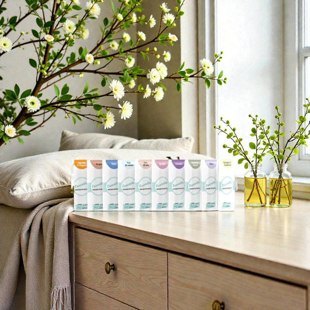 Argan, Vanille & Cashmere, Lotusbloem, Witte musk, Talk, Lavendel, Varen, Katoenbloem, Jasmijn en Oranjebloesem & Citrus.