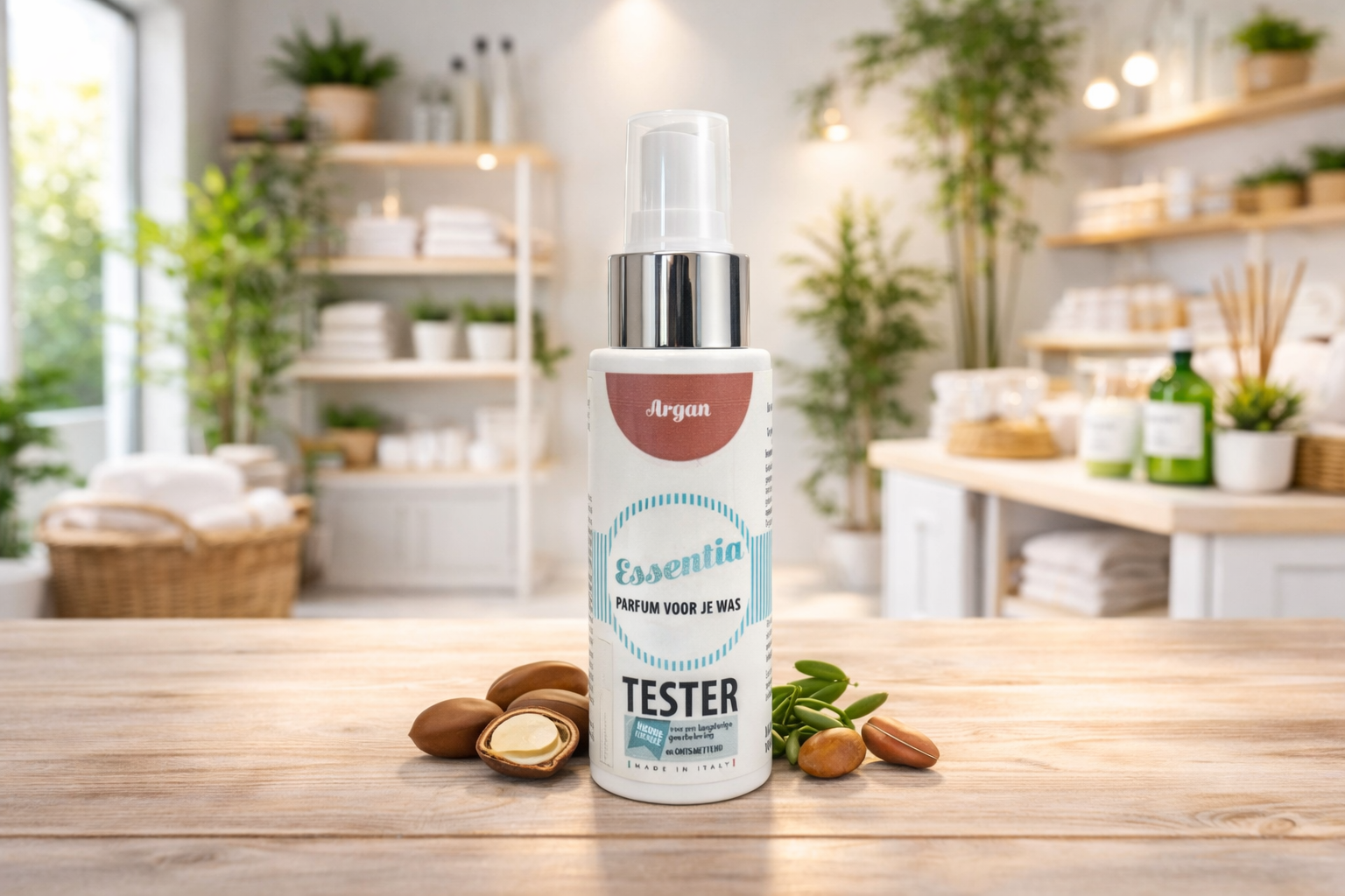Tester voor de klanten met spray in de geur Argan. De tester is navulbaar met de inhoud van de Cloud Argan.